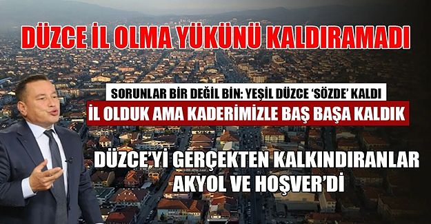 1999 yılında iki büyük depremle yıkılması sonrası aynı yıl 9 Aralık tarihinde yıllardır arzuladığı il olma hayaline kavuşan Düzce için yeniden toparlanma süreci hiç de kolay olmadı. Bolu’nun ilçesi iken siyasetçilerin gözbebeği olan ve hizmette yarışılan Düzce, il statüsüne yükseldiğinde adeta kaderine terk edildi. Gelişme ve kalkınma adına atılan adımların şehre ne kadar fayda sağladığı bugün hala tartışma konusu olurken, Öncü Medya Genel Yayın Yönetmeni Sadullah Ünsal, Düzce’nin resmiyette il olmasına rağmen hala sorunlarla boğuşan bir kent olduğuna parmak bastı.