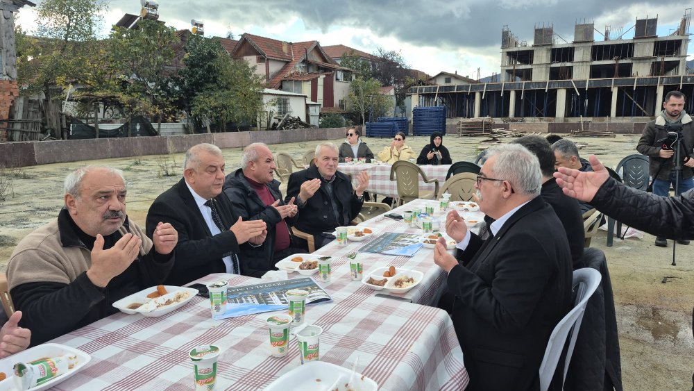 Düzce’nin Cumayeri ilçesinde temel atma işlemi gerçekleştirilen dev proje için yemek ikramı yapıldı. Etkinliğe Cumayeri Belediye Başkanı Mustafa Koloğlu, Düzce TSO Başkanı Erdoğan Bıyık, Düzce TSO Meclis Başkanı Tanju Acar ve yatırım ortağı Düzce TSO Meclis Üyesi iş insanı Özkan Çakır katılım sağladı. Etkinlikte konuşan yatırım ortağı iş insanı Özkan Çakır projeyi ‘Cumayeri ilçemizde 2 firmamızın yatırım ortaklığıyla 300 daire, 10 dükkan ve 6 tane de villa projesine başladık. Şu anda bulunduğumuz yerde 5 bloklu, 132 daire, 4 tanede iş yerimiz var. Bugünde temel atma törenimiz de Allah rızası için kurban keselim dedik. Bölgemize yatırım yapmak istiyoruz. 300 daire, 10 dükkan ve 6 adet villa için toplamda 1 Milyar TL’lik yatırım kararı aldık. Kısmet olursa buradaki 132 tane daireyi 2026’nın Ağustos ayına kadar bitireceğiz. Diğer 168 dairemizin de şu anda mimari projesi bitti. Havalar iyi olursa Şubat veya Mart aylarında oraya da başlayacağız. Dolayısıyla 2027 yılına kadar 300 daire 10 dükkan ve 6 tane villa projesini tamamlamış olacağız.’ Şeklinde tanıttı. Düzce TSO Başkanı Erdoğan Bıyık, temeli atılan bu proje için ‘ Bugün Cumayeri ilçemizde çok kıymetli bir yatırımın temel atma törenini yapıyoruz. TSO Meclis Üyemiz Özkan Çakır’ı da tebrik ediyoruz. Gerçekten bu ekonomik daralmada bu dairelerin fayansına kadar alınmış, her şey tamamlanmış, inşallah kısa sürede bitireceklerini söylediler. Kendilerine ve özellikle Cumayeri ilçesine hayırlı olması temennisinde bulunuyorum.’ İfadelerine yer verdi.