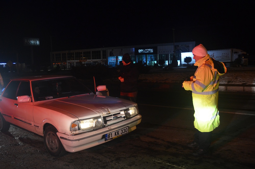 Batı Karadeniz bağlantı yolu olan Akçakoca D-655 karayolunda Akçakoca sapak bölge trafik ekipleri tarafından denetimler artırıldı.