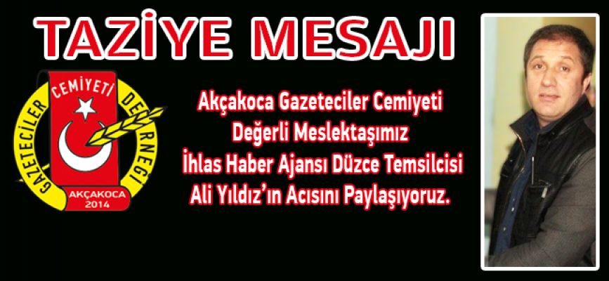 Değerli meslektaşımız İhlas Haber Ajansı Düzce temsilcisi Ali Yıldız’ın babası geçirdiği rahatsızlık nedeniyle hayatını kaybettiği haberini aldık değerli meslektaşımız Yıldız’ın acısını paylaşıyoruz.