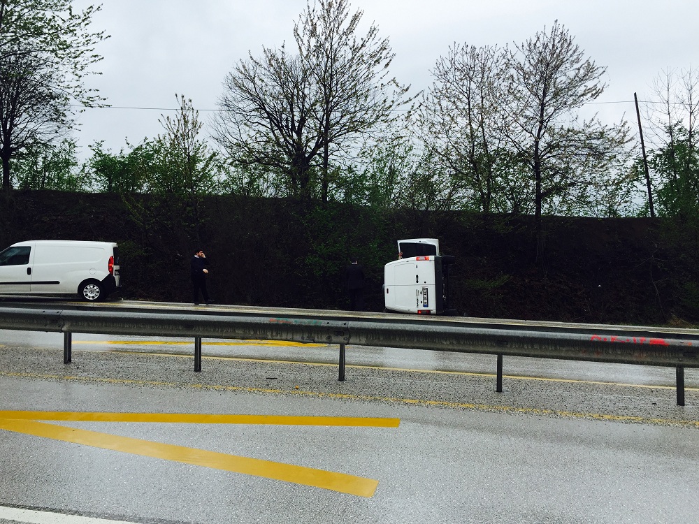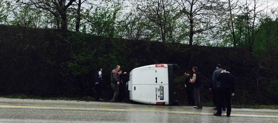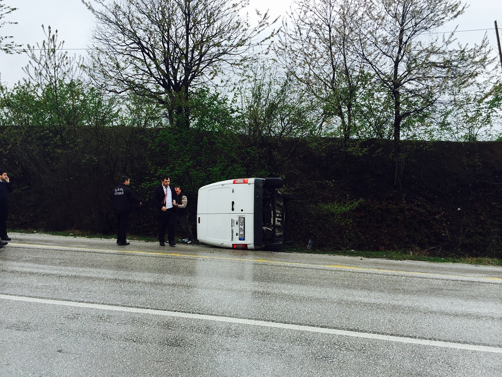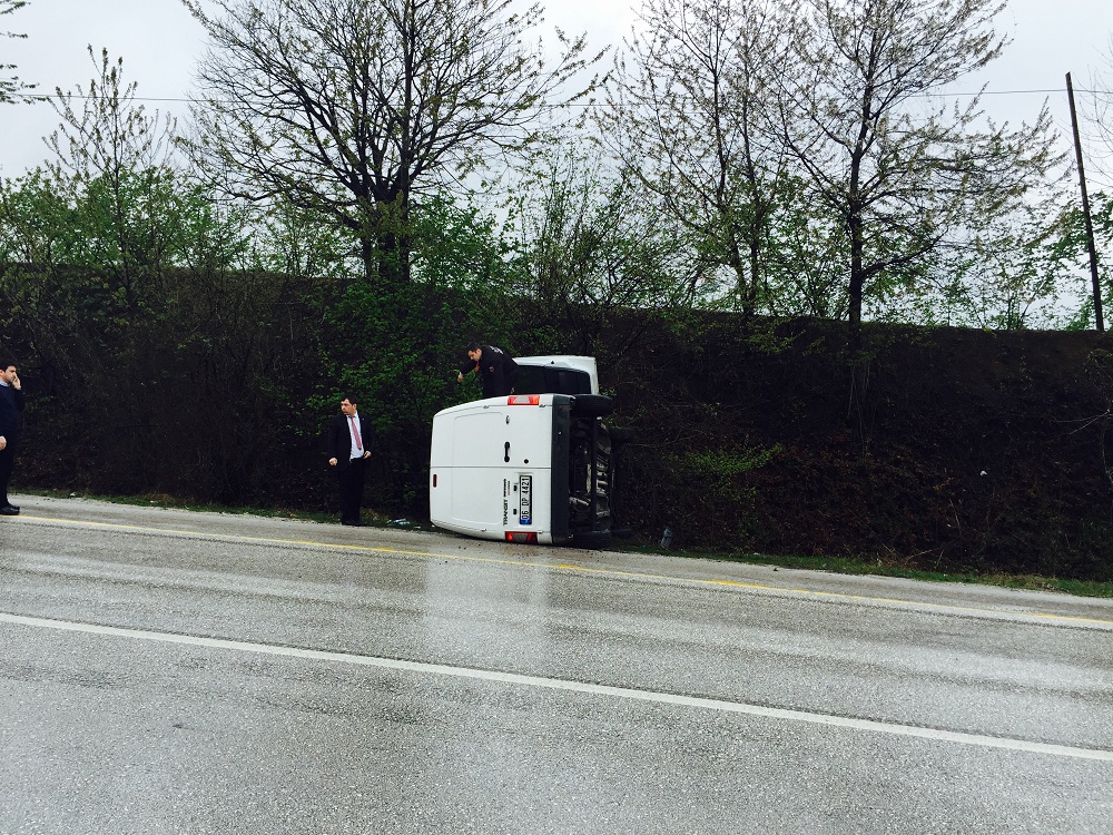 Özel güvenlik firmasına ait olduğu öğrenilen aracın ıslak zemin ve suratlı olduğu için kaza yaptığı iddia edildi.