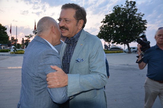 Akçakoca'ya geçmiş olsun dileklerini belirten Hisarcıklıoğlu," Akçakoca'ya ve ülkemize geçmiş olsun dileklerimizi iletmek istiyorum. Bu felaket inşallah son olur. 7 tane şehidimiz var. Allah makamlarını cennet etsin. Allah ailelerine ve Akçakoca'ya da sabırlar versin. Büyük bir felaket atlatılmış.Bu günkü sebebi ziyaretimiz oda başkanımıza, belediye ve kaymakamımıza geçmiş olsun dileklerimizi iletmek. " dedi.