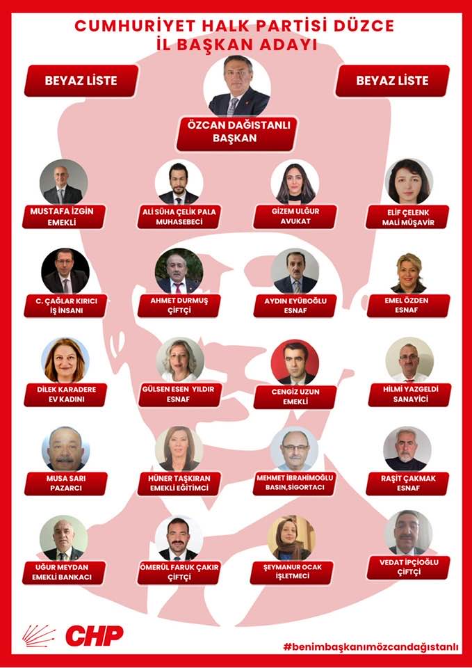 Dağıstanlı’nın hazırladığı beyaz listede Mustafa İzgin, Ali Süha Çelik Pala, Gizem Ulğur, Elif Çelenk, Çağlar Kırcı, Ahmet Durmuş, Aydın Eyüboğlu, Emel Özden, Dilek Karadere, Gülsen Esen Yıldır, Cengiz Uzun, Hilmi Yazgeldi, Musa Sarı, Hüner Taşkıran, Mehmet İbrahimoğlu, Raşit Çakmak, Uğur Meydan, Ömerül Faruk Çakır, Şeymanur Ocak ve Vedat İpçioğlu yer aldı.